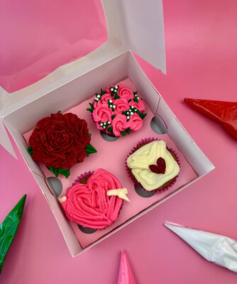Treat yourself (or someone special) to a creative and romantic experience in our Adults’ Valentine’s Day Cupcake Decorating Class. In this relaxed 1.5 hour session, you’ll be guided step-by-step through decorating 4 Valentine's-inspired cupcakes – think delicate roses, sweet hearts, and pretty blossoms in soft pinks, reds, and whites.