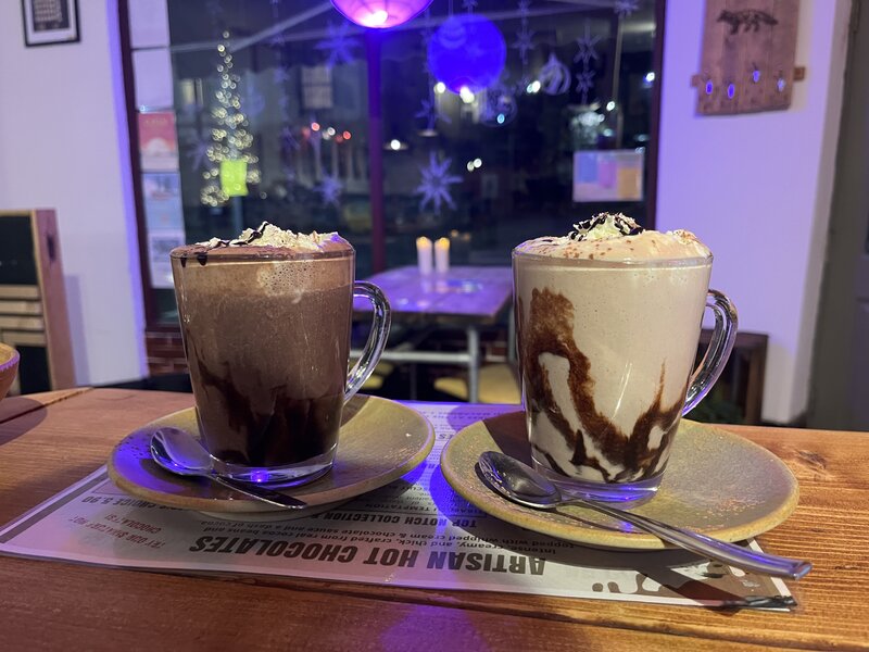 2 indulgent Artisan Hot Chocolates! Get into the festive spirit by choosing your perfect brew from 7 decadent flavours (tea and coffee options also available).
