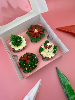 Get into the festive spirit with our Adults’ Christmas Cupcake Decorating Class! During this relaxed 1.5 hour session, you’ll be guided step-by-step through decorating 4 Christmas-themed cupcakes.
