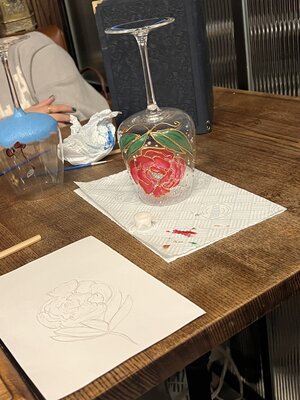 January’s craft is wine glass painting. You’ll design and decorate a large wine glass - the kind perfect for those luxurious, cosy-evening pours. Using high-quality glass paints and Pebeo cerne relief in gold, silver and black, you’ll learn techniques for bold outlines, elegant motifs, and stunning details.