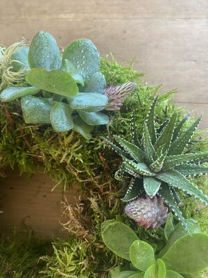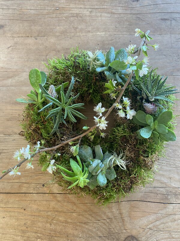 In this workshop you will learn to use beautiful succulents and fresh moss to create a gorgeous living wreath. The wreath can be hung outside all summer in your garden or use it as a sustainable lasting table decoration inside or out.