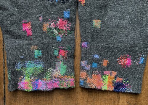 Lizzie David, (@little_moth_mends) is a textile repair specialist living in Bath. A fine art graduate who loves textiles and colour, she has been visibly mending knitwear and woven textiles since 2020. She finds mending the antithesis of fast fashion culture, a mindful way of reconnecting with our clothes in a creative and expressive way, and a simple way of reducing our environmental impact on the world. She undertakes mending commissions and shares the joy of darning with others through her in-person workshops in the local community.