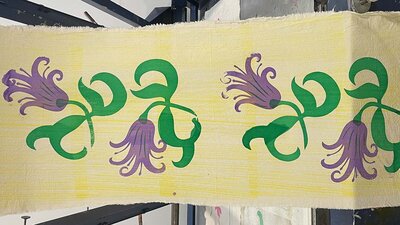 You'll be working on lengths of fabric (approx 55 x 150 cm) using a medium sized silkscreen to hand-print your design. You can print as many pattern variations as you like. We will use the studios vacuum print tables and carousel print machine.