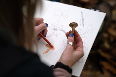 In recent years she’s expanded her passion for the outdoors through running litter picks, taking part in foraging courses, and becoming an avid mushroom enthusiast, trail-runner and paddle boarder. She holds an outdoor first aid certificate, is training towards a Hill and Moorland Leader qualification, and is currently a practitioner with EcoWild.