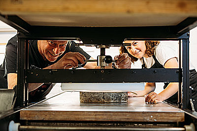The lithographic process utilises the repelling properties of oil and water. This course is an excellent introduction to applying the technique to hand drawn and photographic images. You will use photosensitive lithographic plates, and an exposure unit to transfer your image onto a plate. The plate will then be inked up by hand and printed using a litho press.
