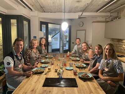 • A dine-in experience enjoying the dishes you’ve made (cooked partly by you and partly by your hosts for a relaxed pace)
