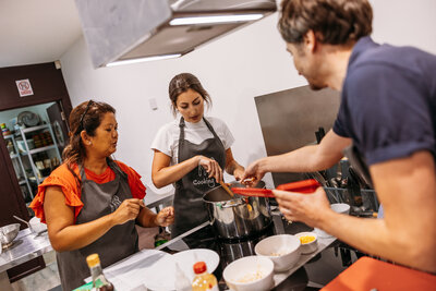 You’ll spend an hour and a quarter cooking before sitting down together to enjoy your creations for the last 45 minutes. Expect plenty of laughs, friendly rivalry, and the chance to crown your team’s kitchen champions!
