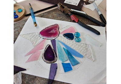 Create a design, learn how to cut glass, and glue it onto an acrylic backing.