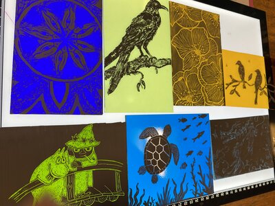 Using your own individual lightbox and special tools, you will transfer your design onto your chosen glass, bringing your piece to life by gently engraving your pattern or image into the paint.