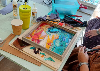 We are a creative studio space offering evening and weekend classes including upholstery, machine sewing, dressmaking, knitting & crochet, stained glass, fused glass, jewellery, printing, floristry, weaving and loads more! We offer regular courses and one day workshops where you can learn a new skill or improve on one you already have. Come along and get creative!