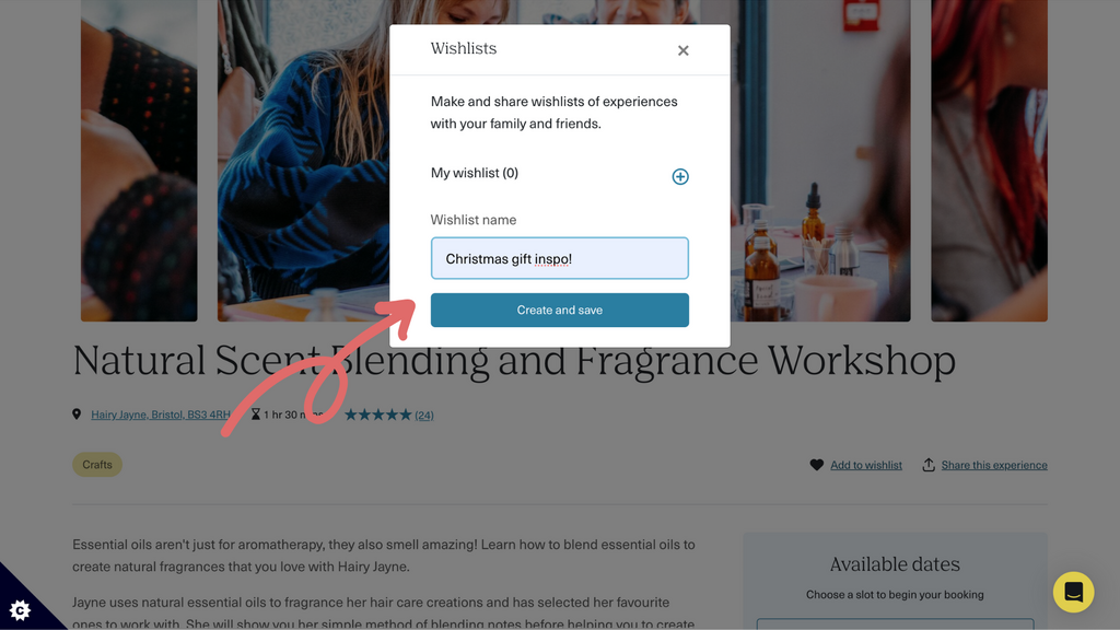 Add to an existing wishlist or create a brand new one - the list limit does not exist! Visit your wish list page to see everything you’ve saved in one spot - your personal collection of dream days out, foodie adventures, and creative workshops.
